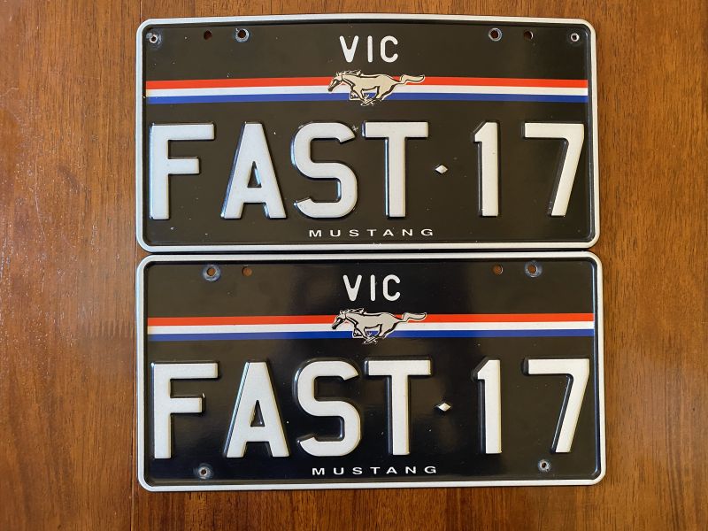 Vic. Ford Mustang plates FAST 17. Excellent Condition, no chips or scratches.