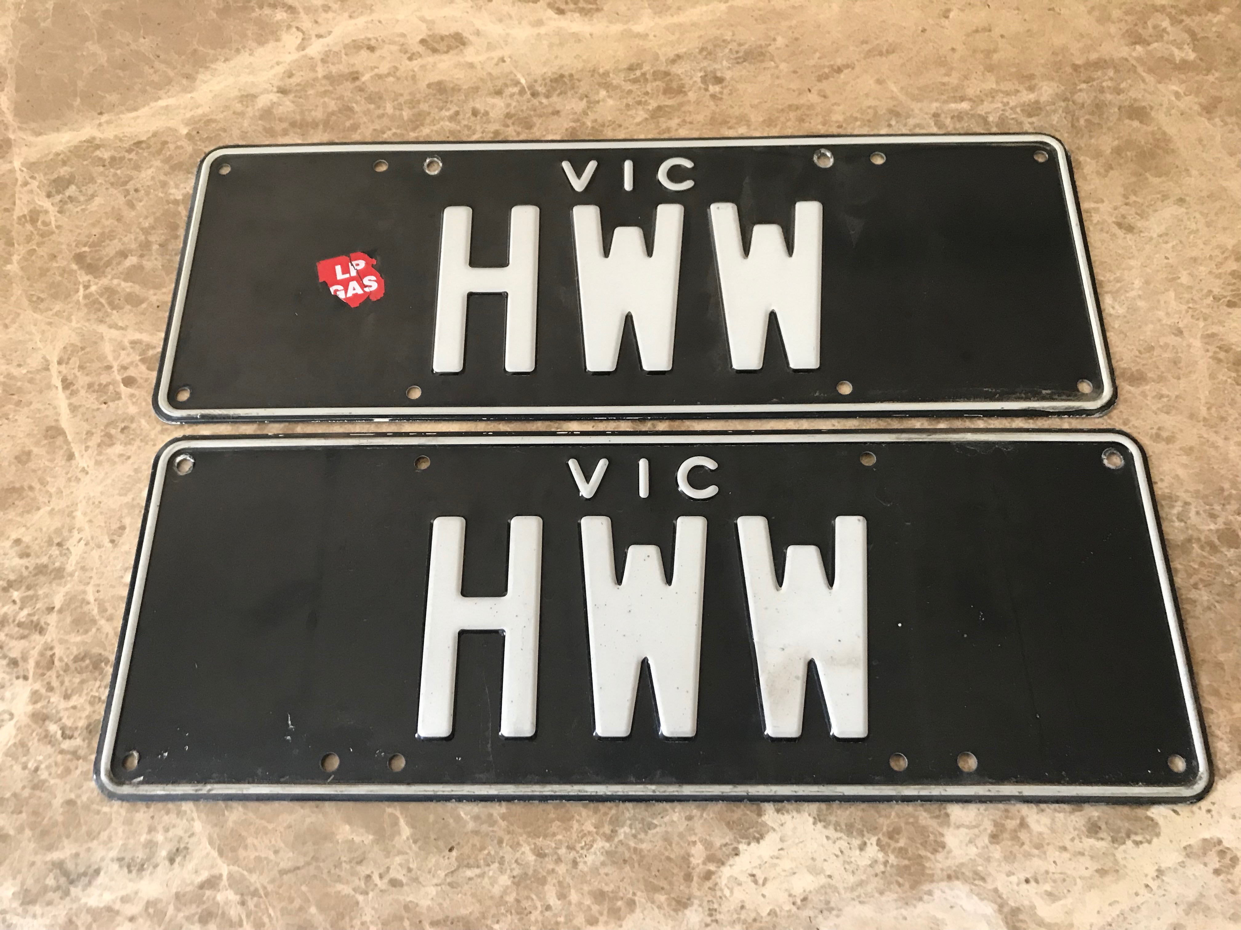 Original plates that were on the company car for 90's TV programme Healthy, Wealthy & Wise.