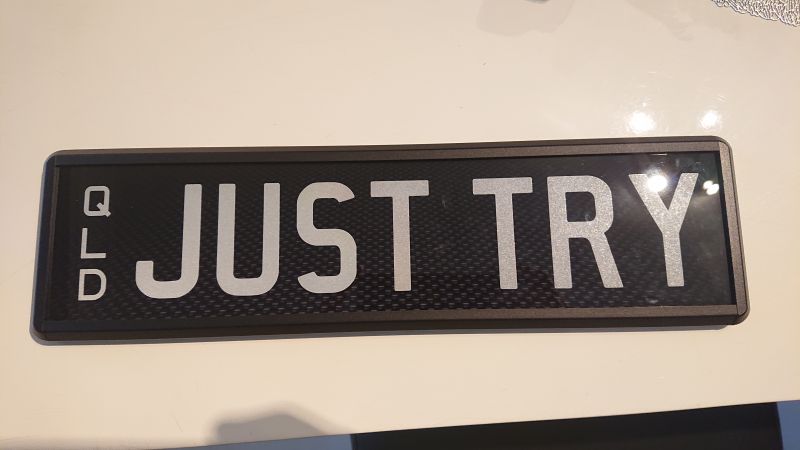 Qld Prestige Plates. Both Slimline. Carbon Fibre Background with Silver Lettering