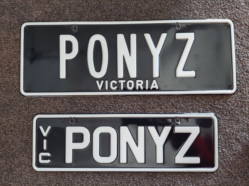 Plates off my 66 Mustang. One plate is smaller to fit nicely on the front bumper.