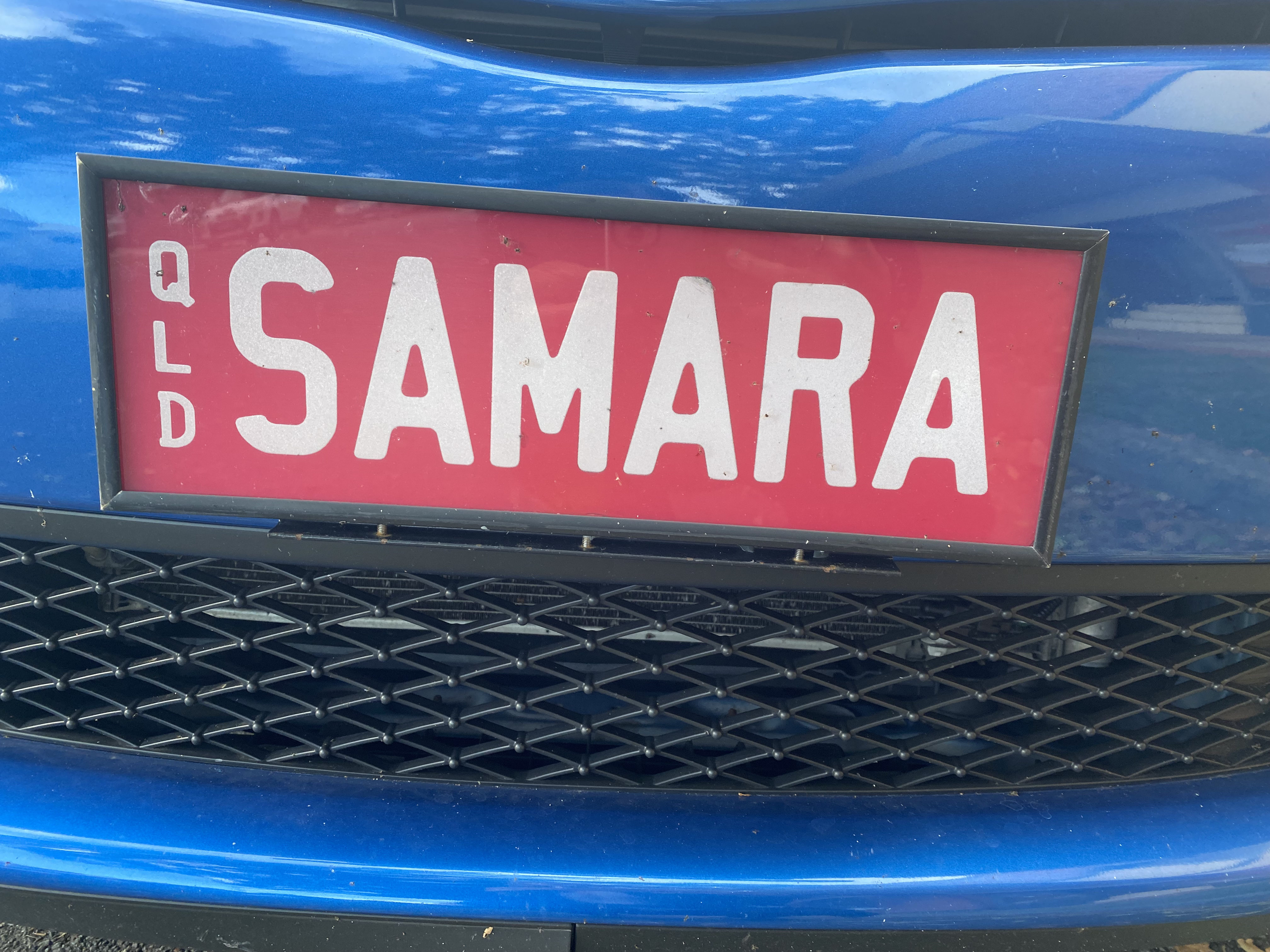 Selling my SAMARA number plate. Can easily change colour etc on the Personal Plates QLD website if pink isn’t your preferred colour.