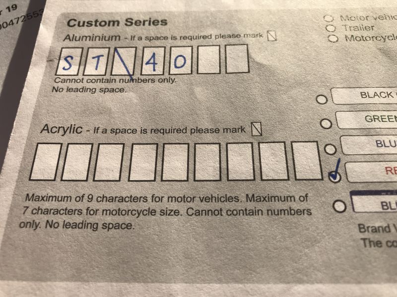 I have the licence to sell this combination. At present they need to be remade so can be done in a variety of colours to suit your vehicle. As per form above. (One plate was stolen) so I now have state plates. Price below is for Aluminium remake only. More for Acrylic.