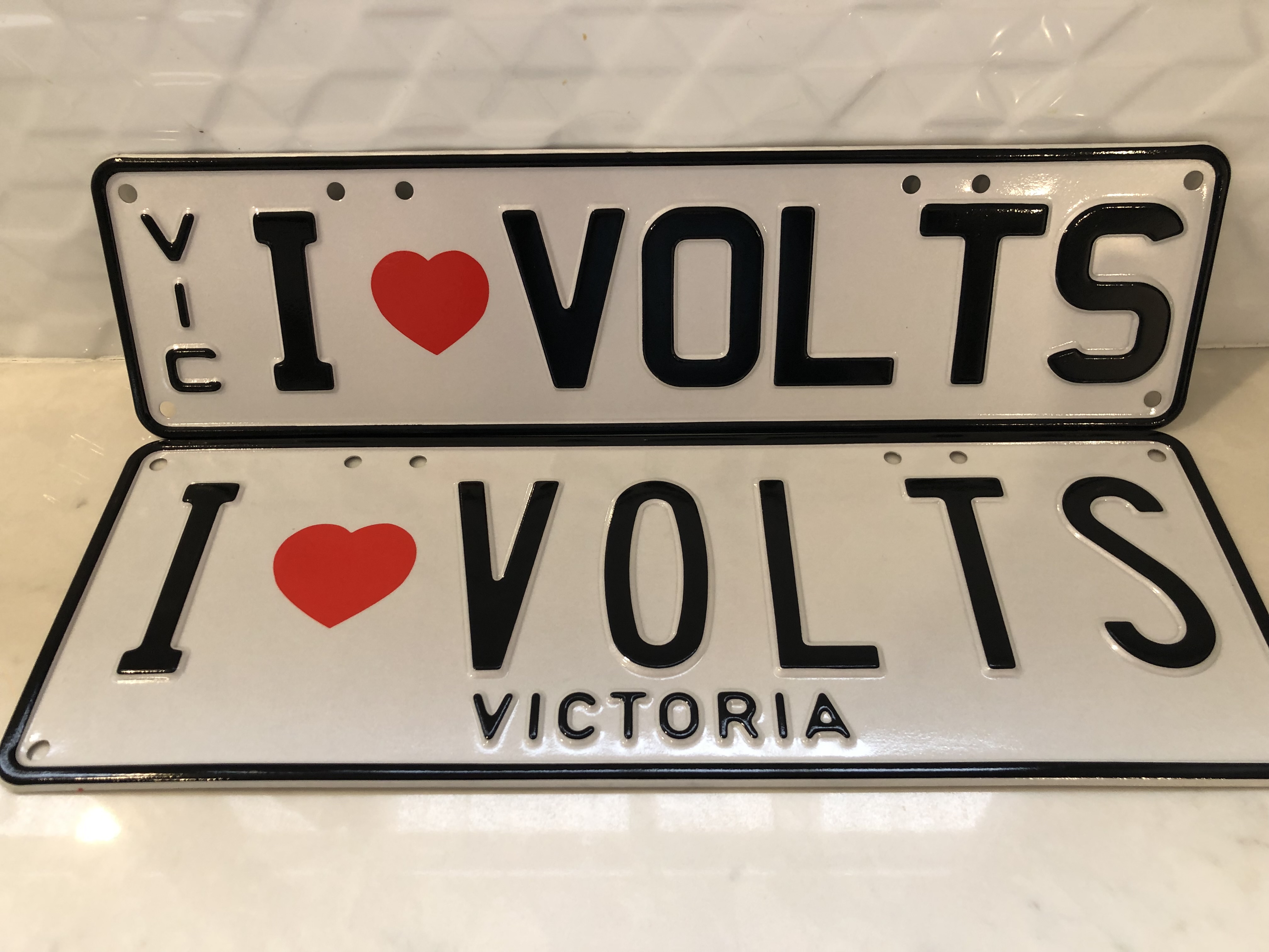 1 x full sized plate, 1 x slimline. See image. ___ Suit any electric car including Holden Volt, Tesla, MG EV etc. ___ Or someone in the electrical industry.