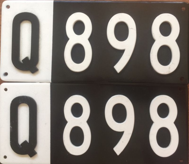 Rare combination... Very lucky numbers! 8+9+8=2+5=7 You will be wealthy and lucky with these plates on your car! Have been displayed but in very good condition. Only very minor scuff marks. Sad to see them go.